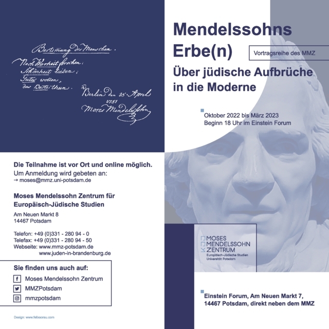 Weitere Informationen unter: https://www.mmz-potsdam.de/aktuelles/veranstaltungen/mendelssohns-erben-ueber-juedische-aufbrueche-in-die-moderne