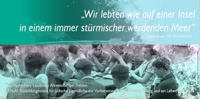 Die bis Ende Januar in der Galerie des Kreishauses Teltow-Fläming in Luckenwalde gezeigte Ausstellung zum Landwerk Ahrensdorf, welche in Kooperation mit dem MMZ vom Museum des Teltow erstellt wurde (wir berichteten bereits im Dialog #102), wird von nun an dauerhaft in Trebbin präsentiert. Am 13. September wurde die Ausstellung feierlich an ihrem neuen Präsentationsort in der Goethestraße 1 in Trebbin eröffnet. So wird die neue Ausstellung nahe dem einstigen Präsentationsort der ersten vorhandenen Ausstellung zum Landwerk Ahrensdorf mit dem Titel „Einblicke zur Hachschara – Das Landwerk Ahrensdorf 1936–1941. Eine Brücke zum Leben“, welche im Jahr 1996 erstellt wurde, gezeigt. Seit kurzem ist auch ein ausführlicher Artikel zum Landwerk Ahrensdorf auf der Seite „Hachschara als Erinnerungsort“ verfügbar: https://hachschara.juedische-geschichte-online.net/ort/2